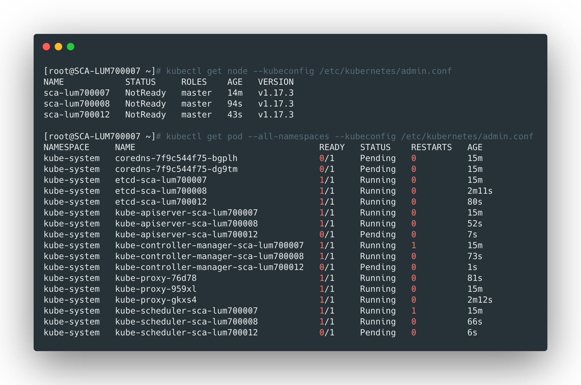 在剩下的两个master节点SCA-LUM700008和SCA-LUM700012执行下面的命令: