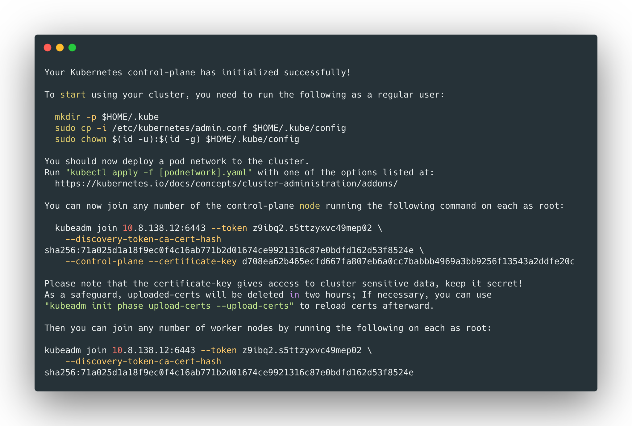 1 | kubeadm join 10.8.138.12:6443 --token z9ibq2.s5ttzyxvc49mep02 \ |