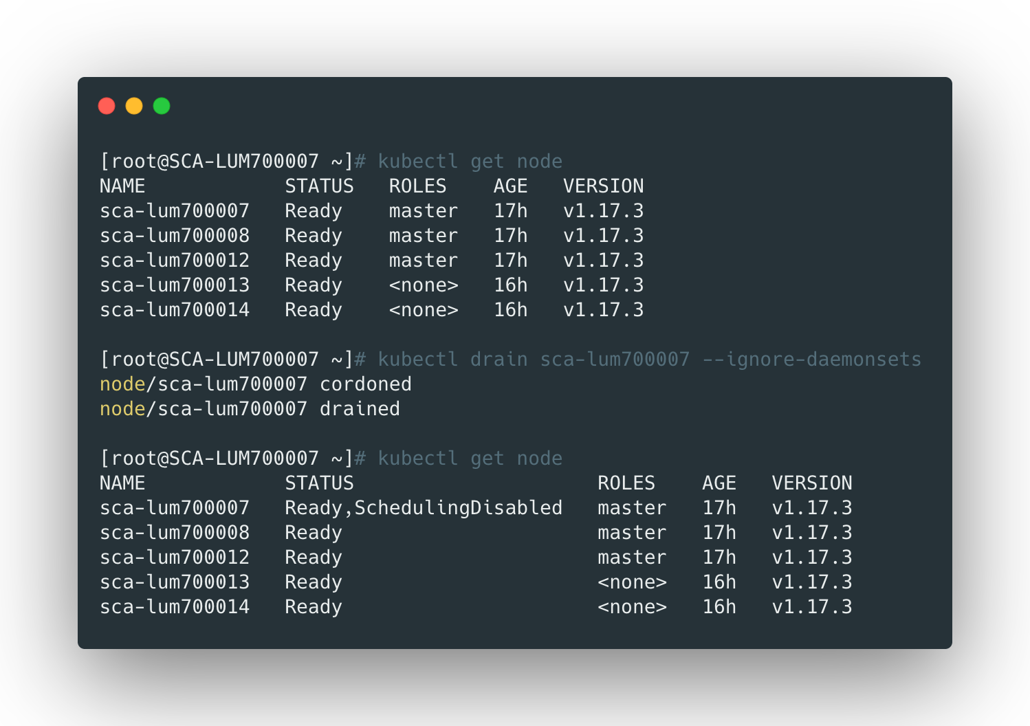 1 | kubectl drain sca-lum700007 --ignore-daemonsets |