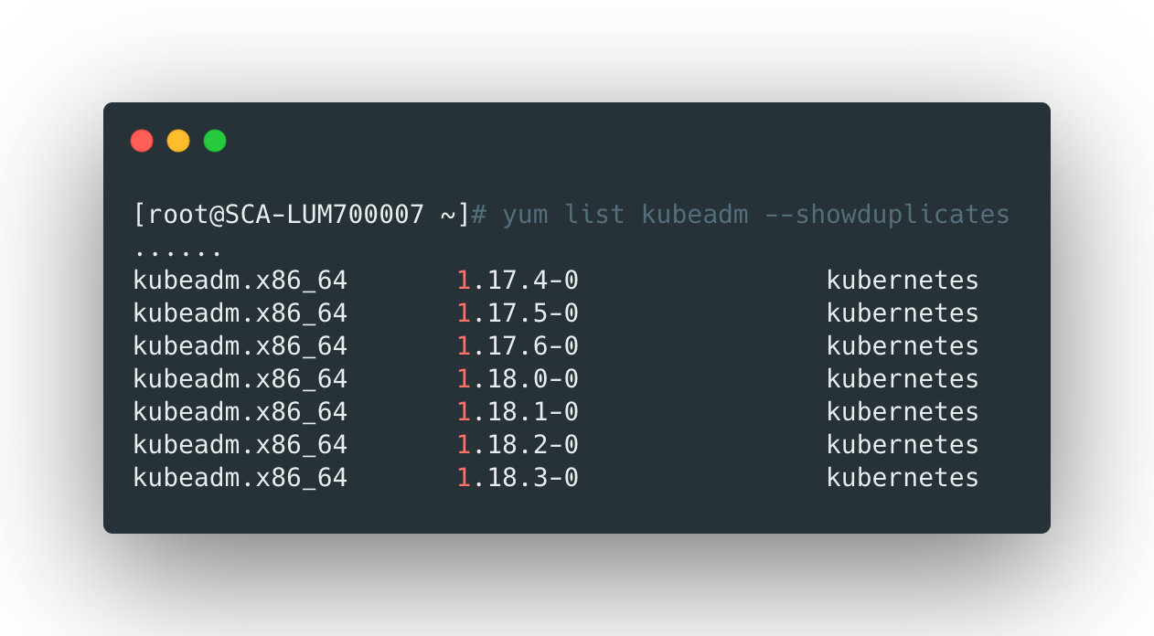 1 | yum list kubeadm --showduplicates |