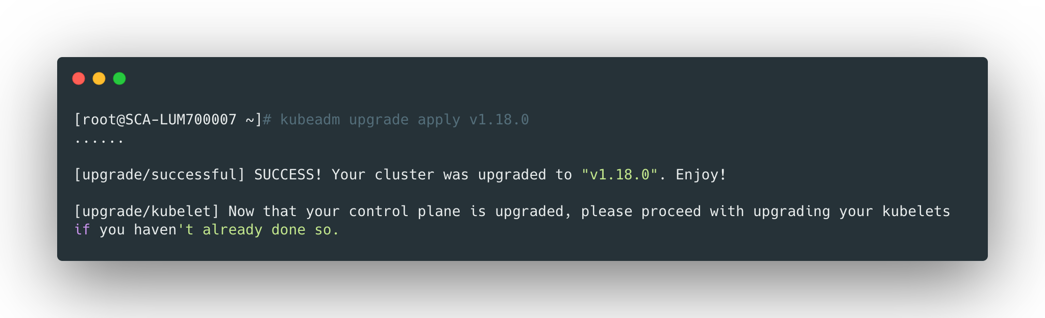 1 | kubeadm upgrade apply v1.18.0 |