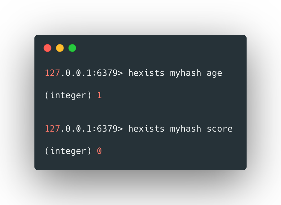 hexists可以判断hash中某个属性是否存在,存在则返回1,不存在则返回0,其格式如下: