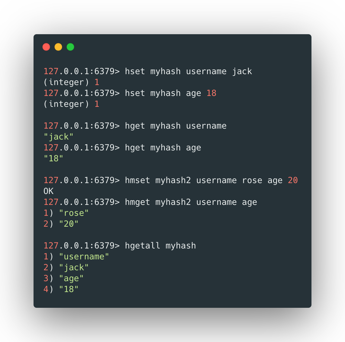 使用hgetall可以获取到hash数据的所有值,其格式如下: