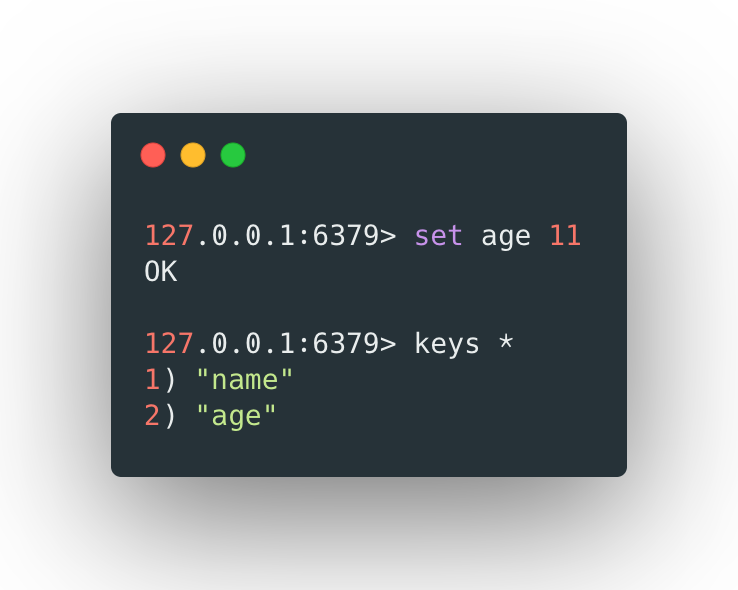 使用set指令可以在redis中存string类型的数据,格式如下: