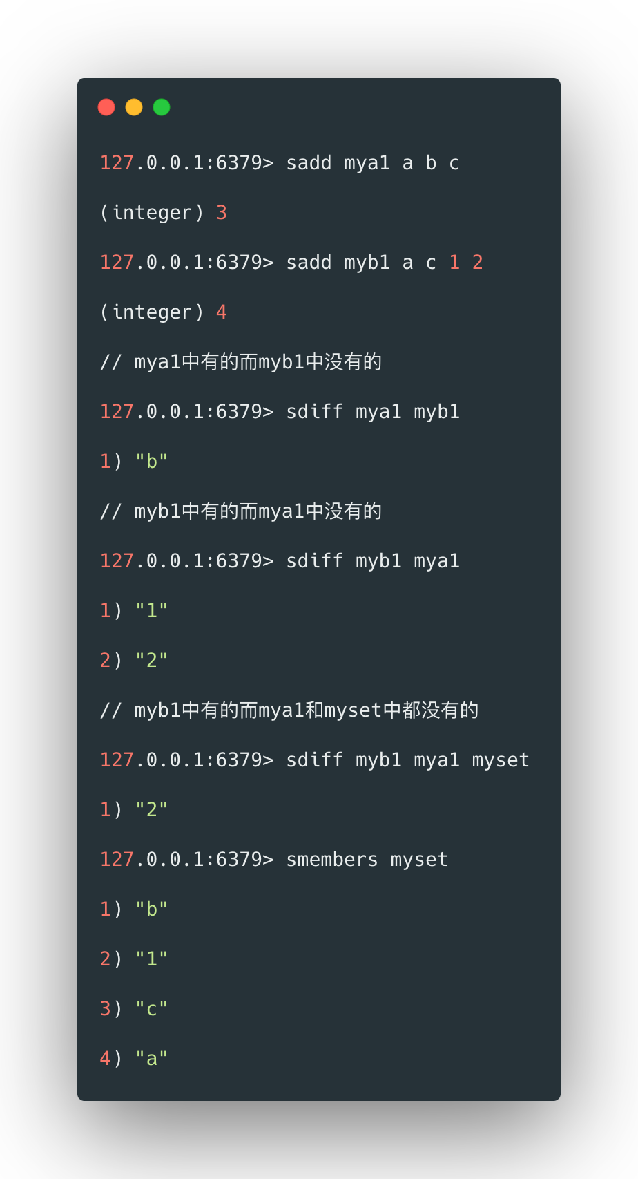 sdiff可以计算出两个set集合的差集,其格式如下: