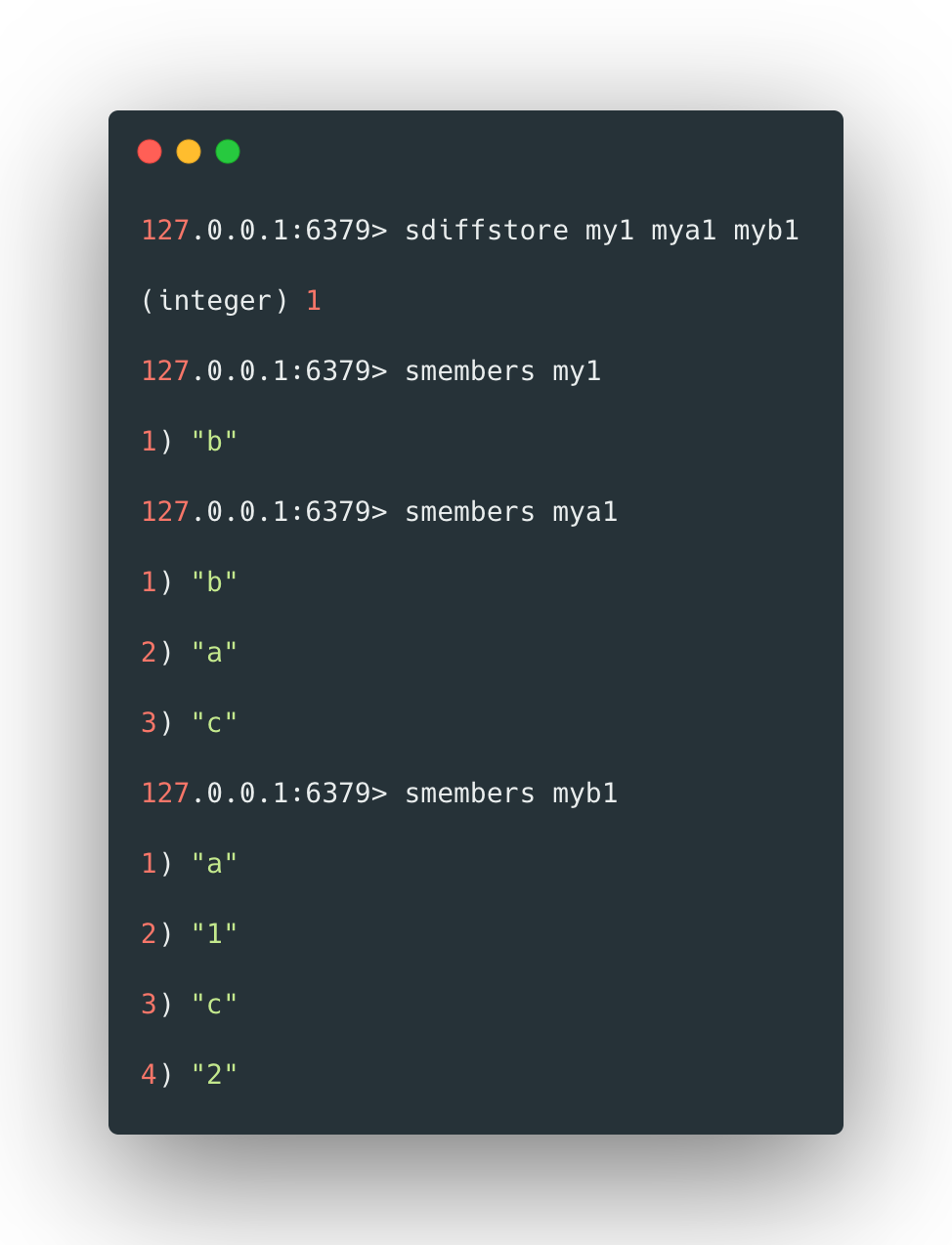 1 | sdiffstore [new set] [key1] [key2] ... |