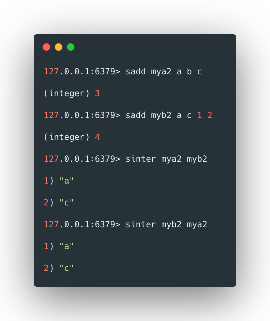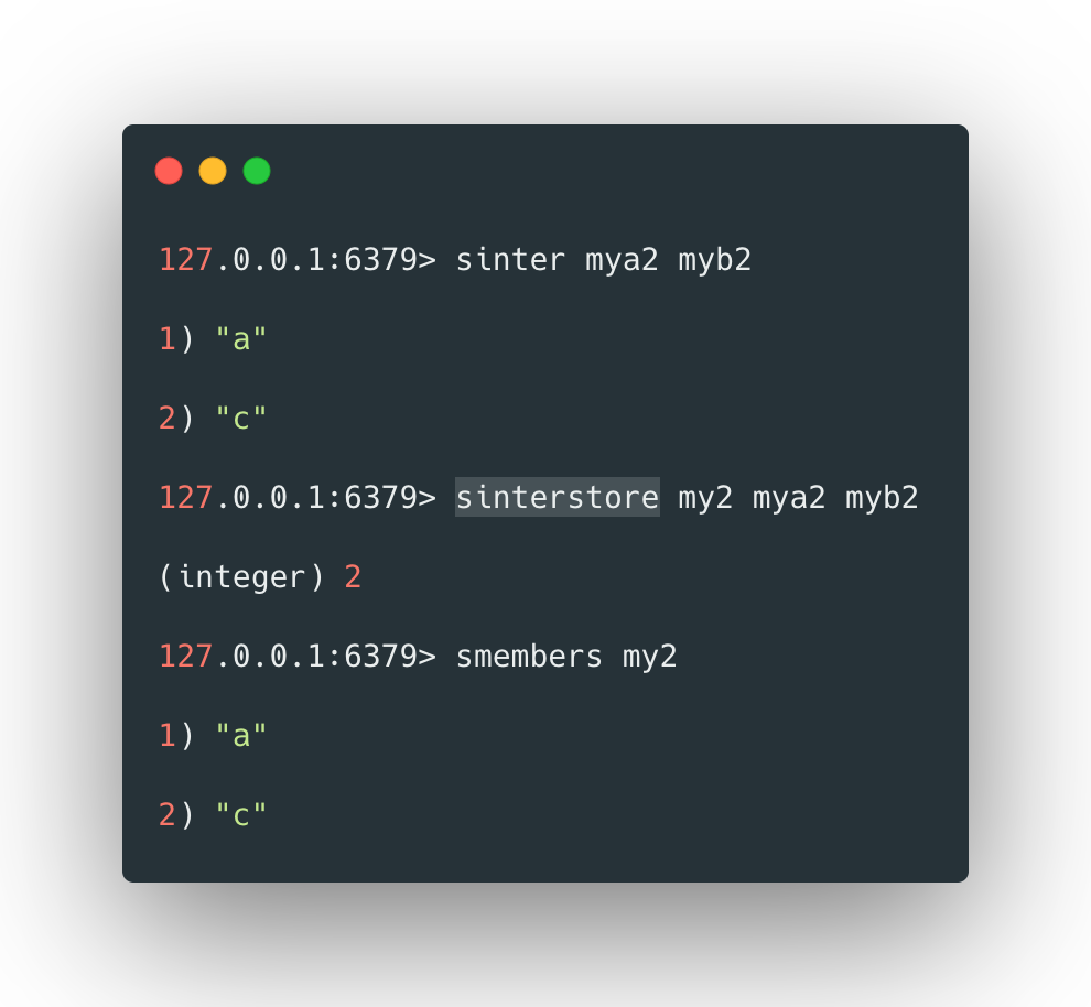 可以使用sinterstore将集合的交集存储到新的集合中,其格式如下: