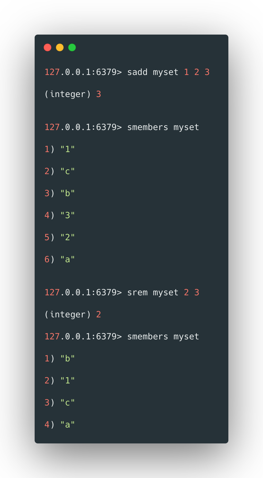 set类型可以看做没有排序的字符集合,可以对其执行添加、删除等操作。和list不同的是,set集合不允许出现重复元素。如果对set类型反复存入多个相同的元素,则只会保存一个。set最大包含40亿个元素。